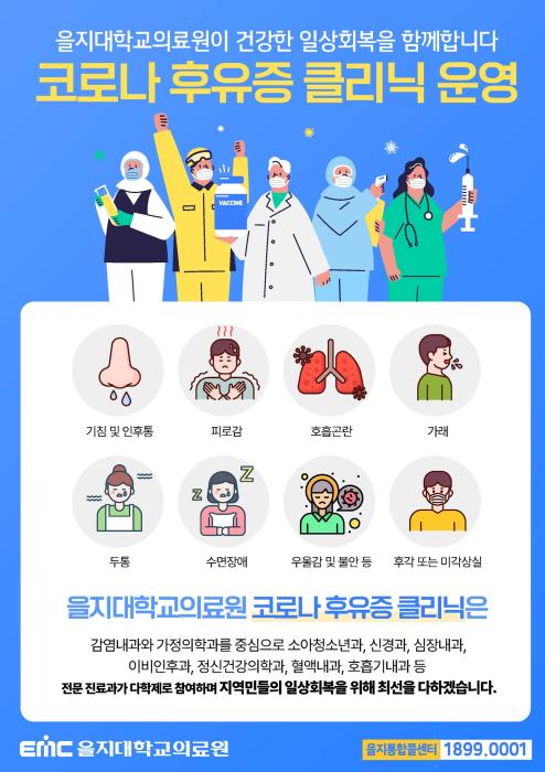 을지대학교의료원은 이를 위해 감염내과와 가정의학과를 중심으로 소아청소년과, 신경과, 심장내과, 이비인후과, 정신건강의학과, 혈액내과, 호흡기내과 등 전문 진료과가 다학제로 참여하는 클리닉을 구축했다.
