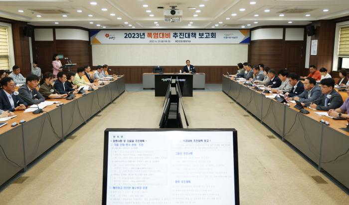 군은 폭염으로부터 안전한 태안 구축을 위해 지난 23일 부군수 주재로 ‘2023년 폭염대비 추진대책 보고회’를 여는 등 각 부서별 폭염대비 종합대책에 총력을 기울이고 있다고 27일 밝혔다.