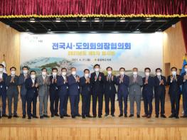 송지용 전라북도의회 의장을 비롯한 17개 시·도의회 의장은 21일 충북 청주에서 전국시·도의회의장협의회 2021년 제5차 임시회를 열고, 전북도의회가 제안한 ‘국가보훈대상자 의료지원 확대 촉구 건의문’과 ‘농림수산업자를 위한 신용보증기금 활성화 촉구 건의문’을 채택했다.