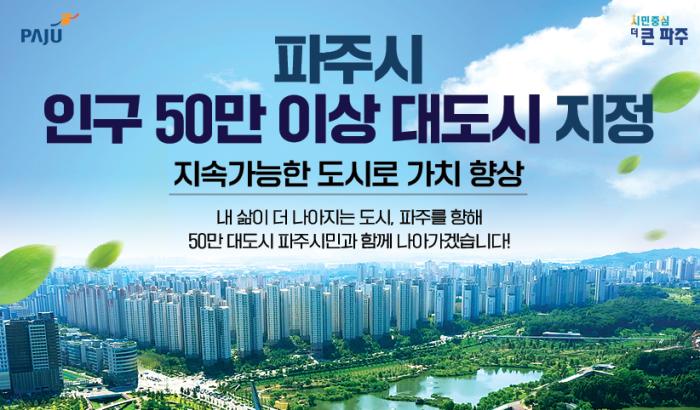 파주시가 2022년 5월 31일 주민등록 인구에 등록외국인과 국내거소신고 외국 국적 동포를 포함하여 인구 50만 명을 넘어선 이후로 대도시 지정 요건인 인구 50만 명을 2년 연속 초과하여 「지방자치법 시행령」 제118조에 따라 대도시로 지정됐다.