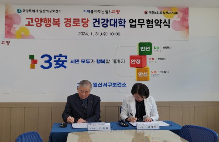고양특례시(시장 이동환) 일산서구보건소는 지난 31일 대한노인회 일산서구지회와 업무협약을 체결했다고 밝혔다.