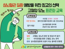 시흥시 중부건강생활지원센터는 만성질환자와 건강관리에 관심이 있는 지역주민을 대상으로 고혈압당뇨병 표준화 교육을 매주 수요일 오후 3시에 운영하고 있다.