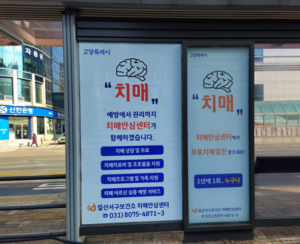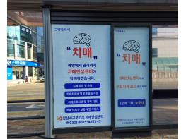 고양특례시(시장 이동환) 일산서구보건소는 12월 말까지 주엽역 등 중앙차로 버스정류장 8개소에‘치매! 예방에서 관리까지 치매안심센터가 함께 하겠습니다’라는 주제로 치매상담과 검진에 대한 광고를 실시한다고 밝혔다.