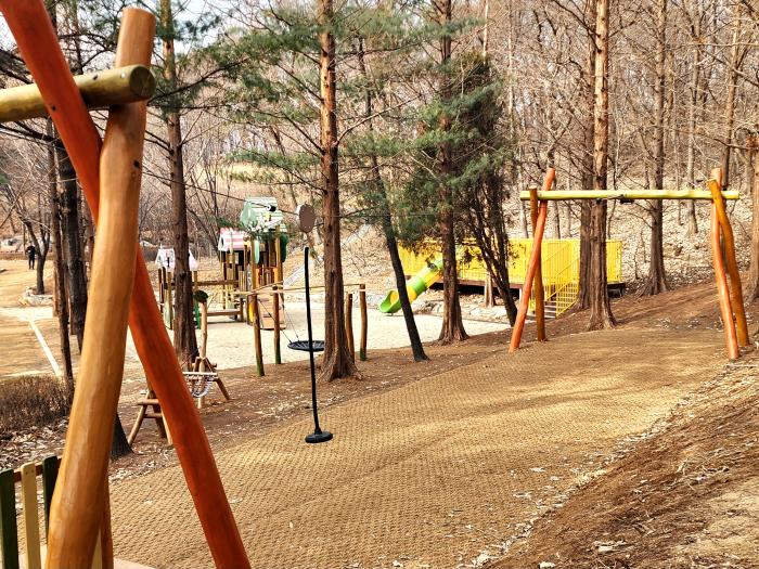 부천시는 가족 단위 이용객이 많았던 공원의 낡고 단조로운 어린이 놀이시설을 아이들의 호기심과 신체활동을 자극하는 시설로 교체했다. 산과 인접한 공원은 자연을 마음껏 즐기고 모험심을 키우는 숲속 놀이터 콘셉트로 조성했다.