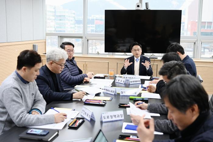 경기도는 지난 7일 경기도청 북부청사에서 교통 분야 특별조직(TF) 첫 회의(킥오프)를 열고 지난 1월 25일 정부에서 발표한 ‘교통분야 3대 혁신 전략’에 대한 ▲(교통) 광역버스 확충, 광역이동수단 확대, The 경기패스 도입 ▲(철도) 2기 광역급행철도(GTX) 추진, 광역 철도망 구축 ▲(도로) 고속도로 지하와 기반 구축 등 분야별 경기도의 추진현황을 점검했다.