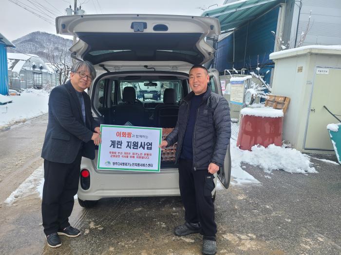 양주다사랑재가노인지원서비스센터(시설장 이도희, 이하 다사랑)는 3월 29일(금) 이화팜(대표 이준영, 남면소재)으로부터 계란 30판을 후원받아 돌봄과 균형 잡힌 식사가 필요한 재가노인가구에 지원하였다.