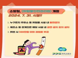 파주소방서(서장 이상태)는 ‘위험물안전관리법’이 개정(2024년 7월 31일 시행)됨에 따라 주유취급소 등 위험물시설에서는 지정된 장소가 아닌 곳에서의 흡연이 금지된다고 9일 밝혔다.