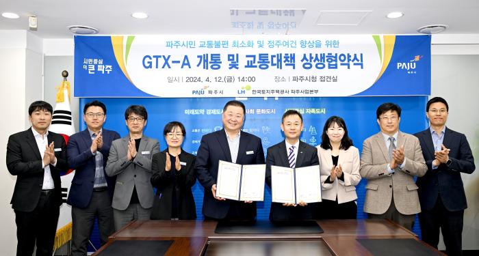 파주시와 한국토지주택공사(LH) 파주사업본부는 12일 ‘수도권 광역급행철도(GTX)-A 개통 및 파주운정3지구 교통대책 마련을 위한 상생 업무협약’을 체결했다.
