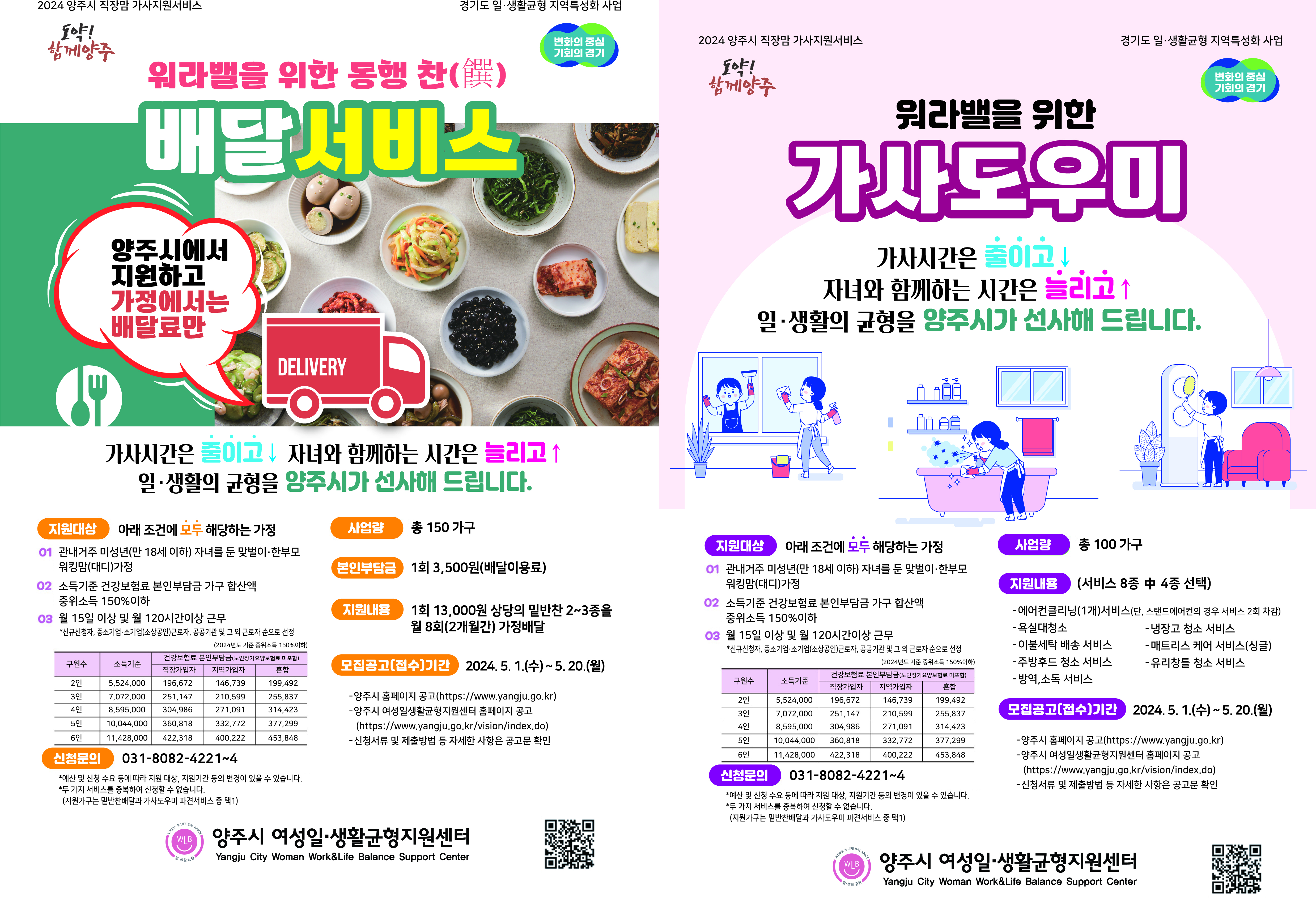 시 관계자는 “이번 사업이 직장맘들에게 가사노동 시간을 줄이고 건강한 가족관계 형성에 집중할 수 있는 기회가 되길 바란다”며, “앞으로도 여성의 일·가정 양립을 통한 삶의 질을 제고할 수 있도록 최선을 다해 노력할 것이며, 양주시 직장맘들의 일과 생활을 적극 응원하겠다”고 말했다.