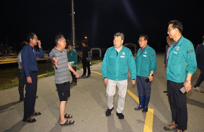 가세로 태안군수가 대조기 피해 최소화를 위해 새벽시간 위험지역 현장 점검을 실시했다.