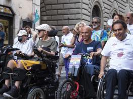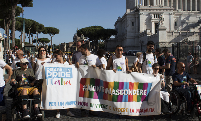 이탈리아에서 장애인 프라이드 행진이 이글거리는 폭염에도 불구하고 로마에서 열려 수 백명씩 사람들이 몰려들었다. 이 행사는 장애인들의 사회 적응을 위해 장애인과 일반인의 융합과 관심을 촉구하는 행진이다.