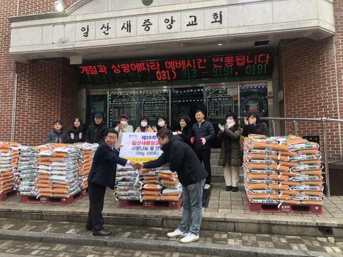 강성봉 일산새중앙교회 목사는 성도들과 어려운 이웃을 사랑하는 마음을 꾸준히 실천하기 위해 기금을 마련했으며, 쌀 10kg 400포를 기부했다.