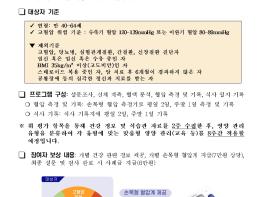 프로그램 대상자는 만 40세~64세로, 고혈압 위험군(수축기 혈압 120~139mmHg 또는 이완기 혈압 80~89mmHg)에 해당하면서 고혈압, 당뇨, 심혈관계·신장계질환 등을 진단받지 않은 시민이다.