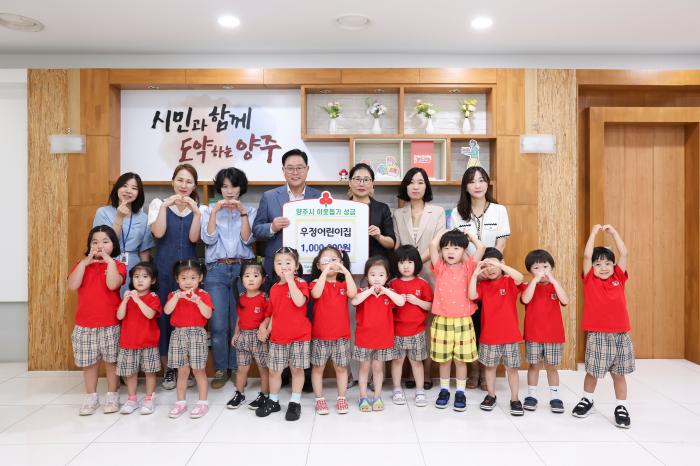 양주시는 20일 삼숭동 소재 우정어린이집(원장 채재숙)에서 이웃돕기 성금 100만 원을 기탁받았다.