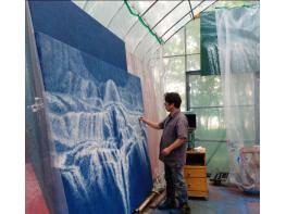 이러한 표현을 위해 화지에는 뿌려지는 오방색 위에 파랑색, 빨강색의 주색을 추가한 바탕이 생성 된다. 이 결과 위에서 흰 단색이 섞이는 반복 행위를 통해서 자연스러운 폭포수로 표현 되게 한다.
