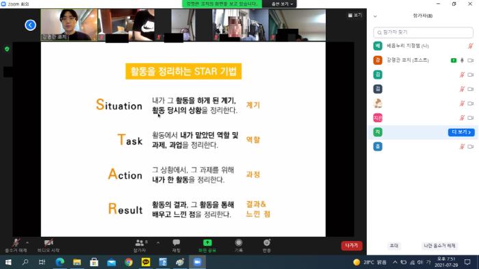 참여 학생은 “코로나19로 수험생활이 힘들었는데 2022년 입시 전형까지 바뀌어서 어떻게 준비해야 할지 막막했다. 이번 자기소개서 코칭을 통해 내가 원하는 정보를 찾아서 적용하는 법을 알게 됐다”고 말했다.