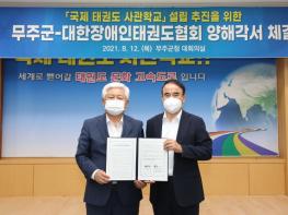 대한장애인태권도협회도 전북 무주군민의 오랜 숙원사업인 국제태권도사관학교 설립에 힘을 보태기로 했다.