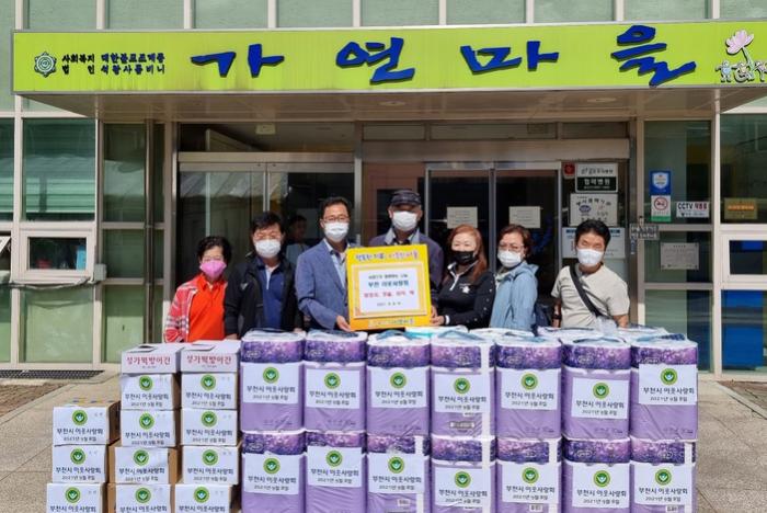 경기 부천시 봉사단체인 이웃사랑회(회장 김영화)는 최근 김포시에 있는 중증장애인거주시설 가연마을에 100만 원 상당의 휴지, 치약, 칫솔 등 생활필수품과 추석 떡을 전달했다고 9일 밝혔다.이웃사랑회는 '작은 나눔 큰 사랑'을 위해 2011년 7월부터 시작된 부천지역 지인들의 봉사 모임으로 현재 23명의 회원들이 한 달에 1만 원씩을 모아 기부를 실천하고 있다.모임 초기에는 주로 반찬을 만들어 어려운 이웃들에게 전달했으나 회원들의 나이가 60대 후반에 들어서면서 고아원이나 장애인, 무의탁노인을 후원하고 있다.김영화 이웃사랑회 회장은 "회원들 모두 소액이지만 작은 나눔을 실천하면서 느끼는 행복감과 감사하는 마음이 아주 크다"면서 "오래오래 건강하게 봉사하면서 사는 게 회원들의 바람"이라고 기부 소감을 밝혔다.정범준 가연마을 운영지원과장은 "코로나로 지난해부터 찾아오시는 분들의 발길이 뜸해졌다"면서 "정말 감사드리고 좋은 인연으로 앞으로도 자주 뵈었으면 좋겠다"고 말했다.