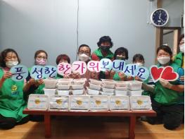 이날 행사에는 부녀회원들이 추석 대표 음식인 송편과 동태전, 동그랑땡, 버섯전 등을 정성스레 조리하여 개별포장 후 독거노인 등 지역사회 소외계층 17가구에 방역수칙을 준수해 직접 전달하며 안부를 확인했다.