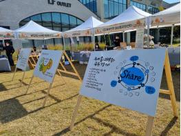 이번 나눔장터는 LF스퀘어에서 지난 5월 이후 두 번째로 열리는 행사로 사회적경제 기업 10곳, 마을공동체와 일반참여자 13곳 등이 참여한 가운데 기업제품·농산품·수공예 등 판매, 참여형 놀이프로그램, 포토존, 문화공연 등 색다른 볼거리와 문화 체험을 선사해 시민들에게 뜨거운 호응을 얻었다.