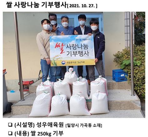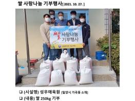 국립종자원은 양파, 감자, 쌀 등 농산물 4070㎏을 김천시 무료급식소와 장애인 복지관 등에 기부했다고 30일 밝혔다.복지 사각지도 해소를 위해 김천시 율곡동 주민센터에서 운영하는 '나눔 냉장고'에 쌀 400㎏을 기부했다. 또 내년 공급되는 벼 보급 종자를 홍보하기 위해 지난 9월15일 종자 품평회를 개최한 밀양에서 수확한 쌀을 밀양 아동복지시설 등에 2회에 걸쳐 450㎏을 기부했다.국립종자원 관계자는 "국립종자원은 다양한 방식으로 사회적 가치 구현을 위해 앞장서고 있으며, 지속적인 기부문화 확산과 국가의 균형 있는 성장으로 국민 삶의 질 제고를 높이는 데 노력하겠다"고 밝혔다.