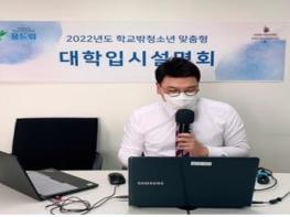 의정부시청소년재단(대표이사 이한범)에서 운영하는 의정부시학교밖청소년지원센터는 2022학년 대학입시 첫걸음을 위한 학교 밖 청소년의 대학입시 수시 ·정시컨설팅 및 대학입시 면접컨설팅을 진행하였다.