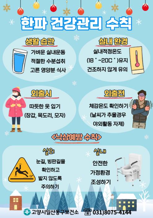 고양시(시장 이재준) 일산동구보건소가 한파로 인한 피해 예방을 위해 건강취약계층을 대상으로 집중 방문건강관리를 강화한다고 14일 밝혔다.