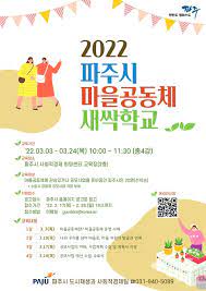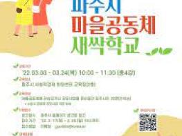 파주시(시장 최종환)는 3월 3일 사회적경제희망센터 교육장에서 마을공동체 활성화와 신규 공동체 발굴을 위해 교육생 및 관계자 30여 명이 참석해 ‘2022년 파주시 마을공동체 새싹학교’ 개강식을 진행했다.