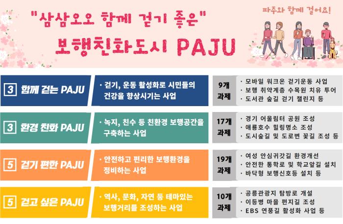 이 프로젝트는 파주시가 올해 인구 50만 대도시로 진입함에 따라 자동차 중심의 도시에서 ‘사람 중심’의 보행친화도시로 전환하기 위해 추진된다.